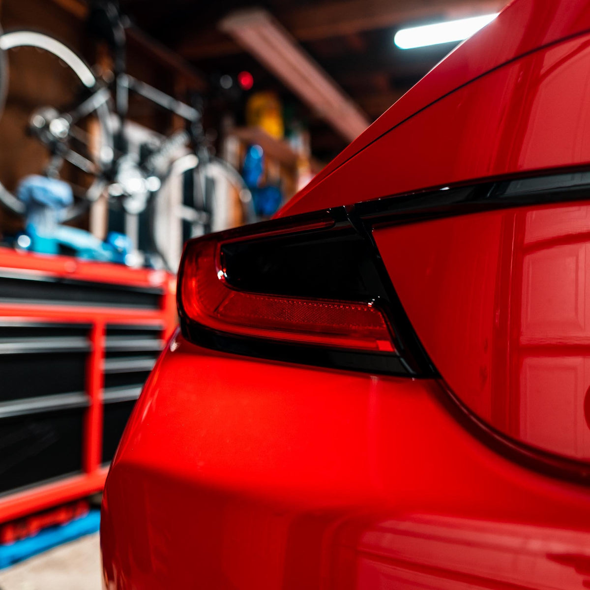 Transform your tail lights into one cohesive stealth design with our Tail Light Overlay Kit. This kit includes both the turn signal and sidemarker overlays in your choice of dark smoke or light smoke to get rid of the clear turn signal and the red reflectors. This accentuates the red C light of the brake light and blends the rest of the lights in with the black accents. The turn signal is still easily visible through the tinted overlay.