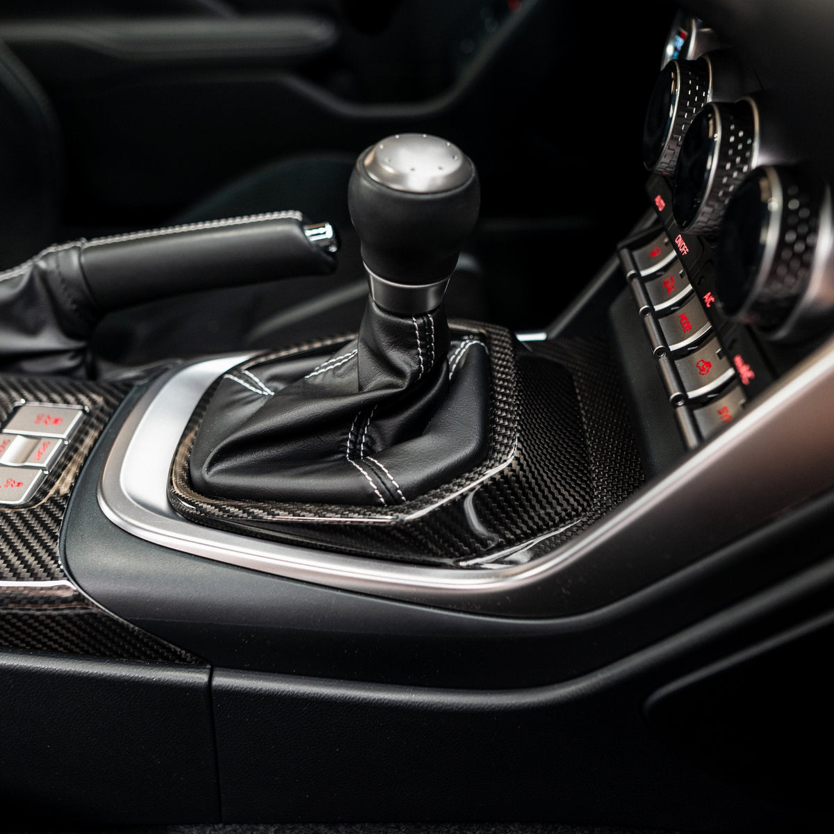 The GR86/BRZ has gorgeous body lines on the exterior, but inside the car it can be a little underwhelming. With the addition of the Driven Media Carbon Fiber Shifter Trim Cover you can add a carbon weave surrounding your shifter that is sure to catch your eye every time you get inside the car. This piece sits neatly right on top of the OEM trim and once installed it’ll look like it should have been there from the moment you received the car.