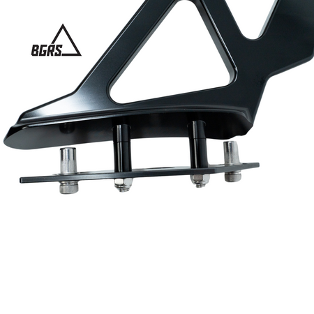 The BGRS Wing Riser Kit is engineered for optimal downforce distribution, featuring a floating bracket system and a steel reinforcement plate that mounts to the inner trunk for added support. This design minimizes stress on the trunk lid, helping prevent long-term damage that other mounting systems may cause. The risers also cover factory-drilled holes, protecting against the elements and maintaining a clean, polished look. Precision-fitment is ensured with 3D scanning and rendering, making it compatible with both aftermarket and OEM wings. Built to last, the kit is crafted from high-quality 6061 billet aluminum for durability and strength.