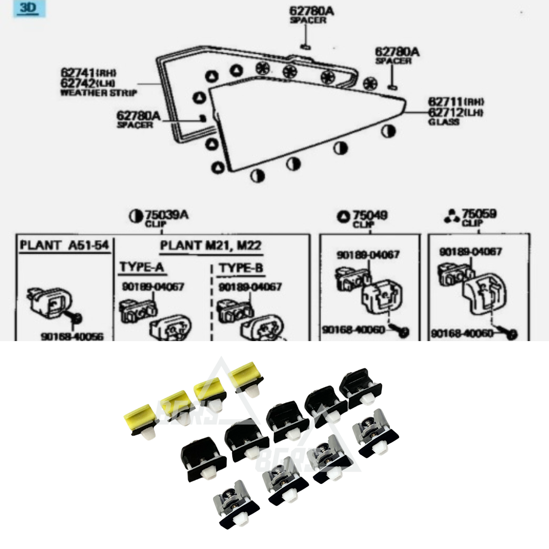 Restore and secure your AE86’s hatch window trim the right way with this OEM Toyota Hatch Window Trim Clip Kit. Designed specifically for the 1984–1987 Toyota Corolla AE86, these factory clips ensure a precise and clean fitment for your hatch window trim, just like it left the factory.